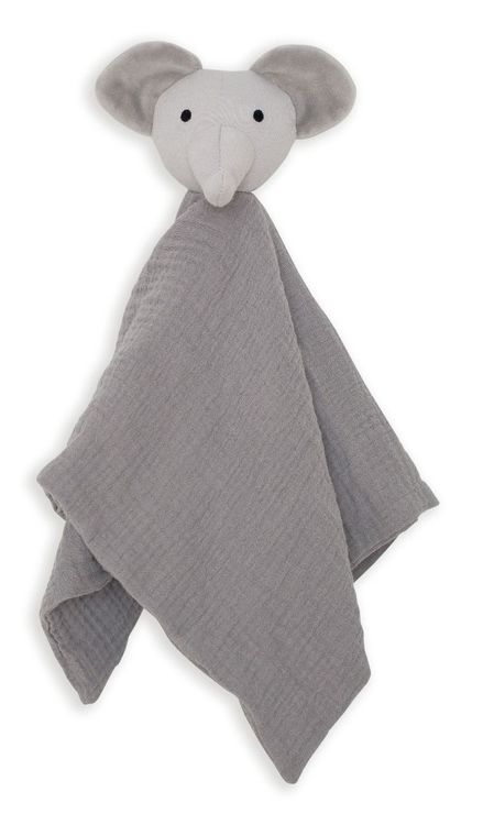 En otroligt söt grå snuttefilt i formen av en liten elefant . Elefanten har supermjuka och söta öron att fingra och snutta på och kommer bli en älskad kompis. Material: Velour, bomull,Mått: 39 cm x 39 cmDesigner: JaBaDaBaDo