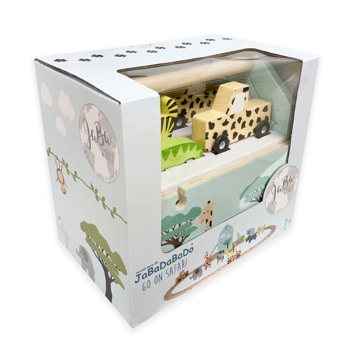 Utforska Afrikas savann med denna roliga tågbana från svenska JaBaDaBaDo! I setet ingår 12 vägbitar för att bygga ihop tågbanan, 2 bilar, 9 safaridjur, 1 stege och 1 hus där djuren kan vila upp sig efter en lång dag på savannen.Mått: 22 x 15 x 20 cm Material: Trä.Designer: JaBaDaBaDo