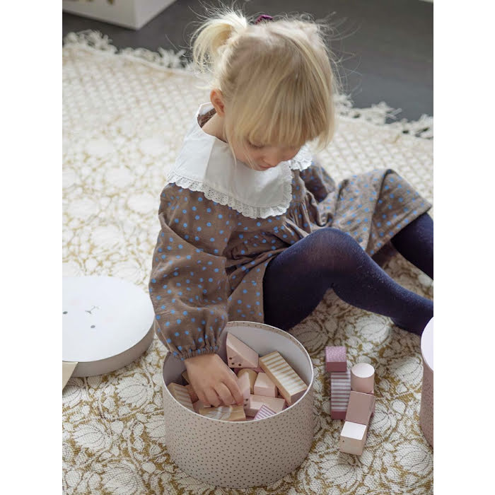 Söta träklossarna i trä från svenska Jabadabado. Den lilla kan stapla dem och bygga torn, räkna dem. Bättre leksak än så är svårt att hitta! Dessutom är de mycket vackra och kommer i en fin presentförpackning. Mått: Förpackning 25x19x19 cm. Totalt 50 klossar. Rekommenderad ålder: + 2 årMaterial: Trä.Designer: JaBaDaBaDo