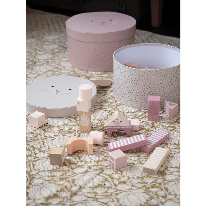 Söta träklossarna i trä från svenska Jabadabado. Den lilla kan stapla dem och bygga torn, räkna dem. Bättre leksak än så är svårt att hitta! Dessutom är de mycket vackra och kommer i en fin presentförpackning.