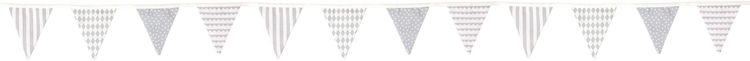 En fin tygvimpel med flera olika mönster blir en vacker detalj till din barnrumsinredning. Du fäster den enkelt på väggen, eller tvärs över sängen. Varför inte kombinera med ett fint lektält eller en vacker sänghimmel i samma design. Med denna långa vimpel (total räckvidd fem meter) kommer du snabbt och enkelt att förändra ditt barnrum till en mer levande och vacker plats.