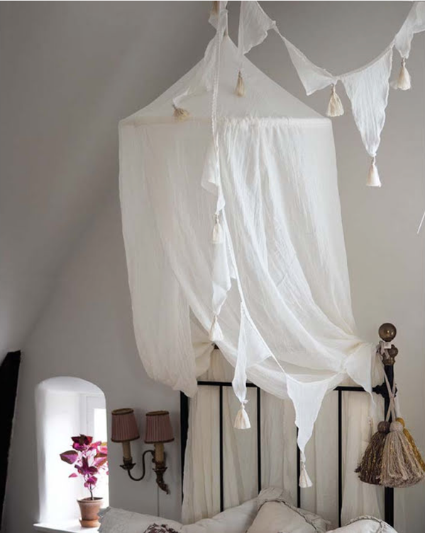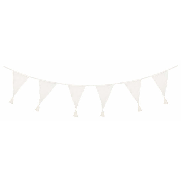 En fin tygvimpel som blir en vacker detalj till din barnrumsinredning. Du fäster den enkelt på väggen, eller tvärs över sängen. Varför inte kombinera med ett fint lektält eller en vacker sänghimmel i samma design. Med denna långa vimpel (total räckvidd fem meter) kommer du snabbt och enkelt att förändra ditt barnrum till en mer levande och vacker plats.