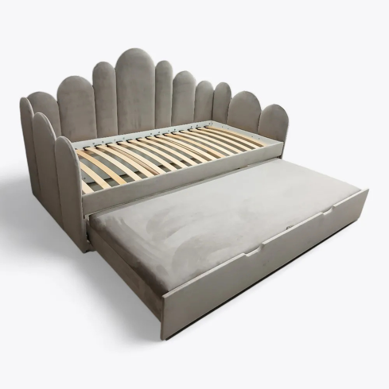 Den utdragbara underbädden gör att sängen enkelt kan förvandlas till en sovplats för två barn, utan att ta upp extra golvyta i barnrummet. På dagen skjuts extrasängen smidigt in under huvudbädden, vilket gör Jessa utdragssäng till en optimal lösning för mindre rum där funktion och platsbesparing är viktigt.