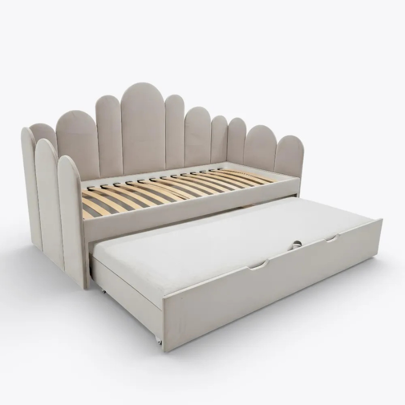 Den utdragbara underbädden gör att sängen enkelt kan förvandlas till en sovplats för två barn, utan att ta upp extra golvyta i barnrummet. På dagen skjuts extrasängen smidigt in under huvudbädden, vilket gör Jessa utdragssäng till en optimal lösning för mindre rum där funktion och platsbesparing är viktigt.