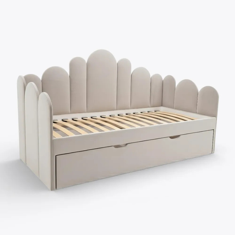 Jessa utdragssäng 90×200 cm är en praktisk och stilren barnsäng med smart utdragbar extrasäng och förvaring– perfekt för syskon som delar rum eller för övernattande kompisar.