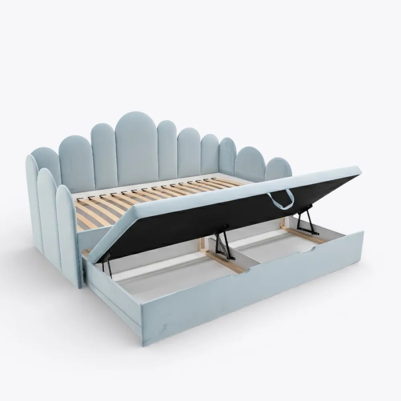 Den utdragbara underbädden gör att sängen enkelt kan förvandlas till en sovplats för två barn, utan att ta upp extra golvyta i barnrummet. På dagen skjuts extrasängen smidigt in under huvudbädden, vilket gör Jessa utdragssäng till en optimal lösning för mindre rum där funktion och platsbesparing är viktigt.