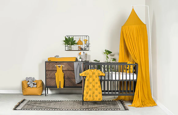 En söt och fin mustard sänghimmel från Jollein. Denna sänghimmel kommer garanterat att bidra till din barnrumsinredning på ett mycket elegant sätt.