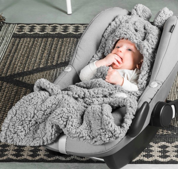 Fin och mjuk grå filt till bilbarnstol från Jollein. Perfekt för att hålla värmen när man transporterar barnet. Filten har en liten ögla i nacken så man kan hänga den i hallen när den inte används. Passar till bilbarnstolar och barnvagnar med 3/5-punktssele.