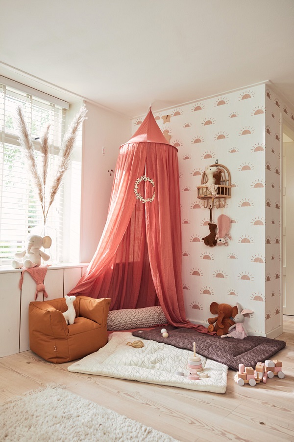 En söt och fin rosa sänghimmel från Jollein. Denna sänghimmel kommer garanterat att bidra till din barnrumsinredning på ett mycket elegant sätt.