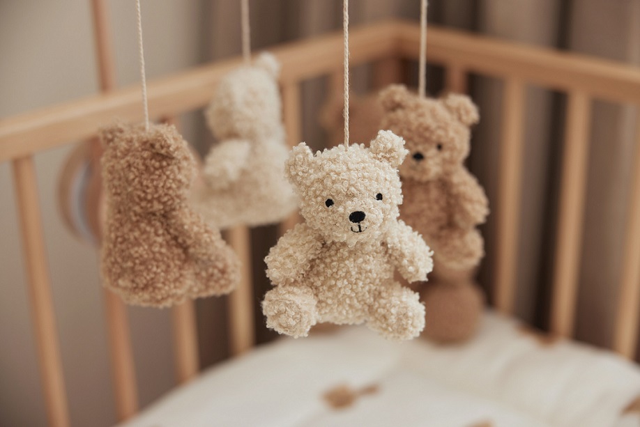 Alla barn älskar denna vackra och dekorativa mobil av med urgulliga teddybjörnar i mjukt teddytyg från Jollein.