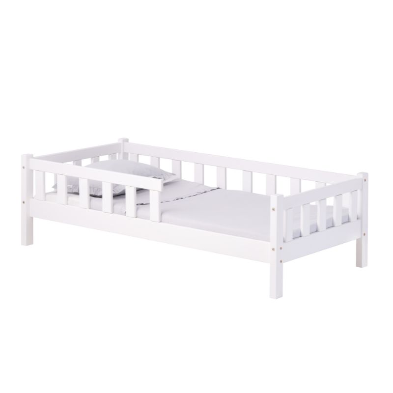 Här är den ultimata juniorsängen! En stabil och gedigen säng i tidlös design, som inte bara är en mysig sovplats, utan även en klockren inredningsdetalj i barnrummet! Sängen har smarta stödbrädor på bägge sidor som skyddar barnet från att rulla ur sängen.  Sängen är gjord i högkvalitativt furuträ och målad med kemikaliefri färg. Säkerhetscertifierad enligt EU-standard.En säng…