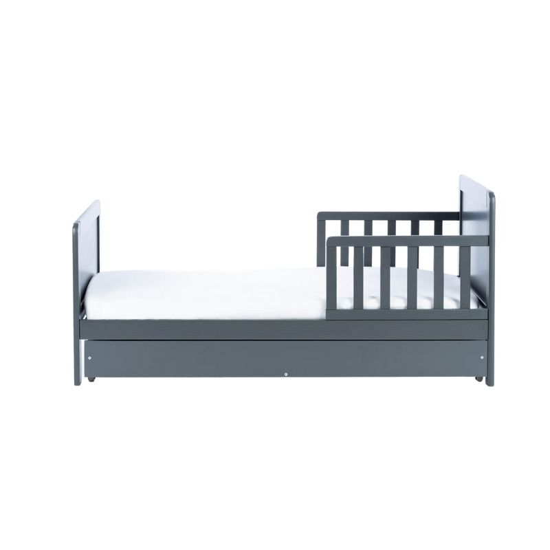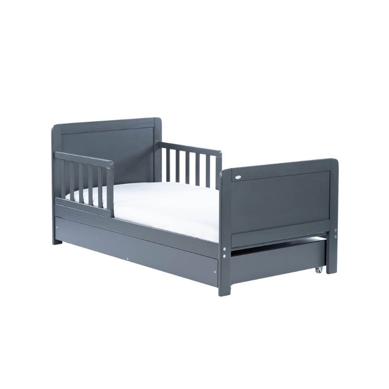 Sängen har smarta stödbrädor på bägge sidor som skyddar barnet från att rulla ur sängen. Dessutom ingår en praktisk och rymlig förvaringslåda som kan användas till att förvara barnets alla leksaker och sängkläder. Lådan har hjul samt ett skydd som hindrar damm och smuts från att samlas inuti lådan.