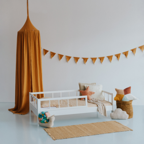Sängen har smarta stödbrädor på bägge sidor som skyddar barnet från att rulla ur sängen.