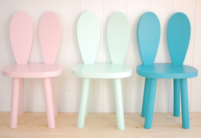 Ett exceptionellt set om två mintstolar med formen av en kanin som ger en fantastisk charm till barnrummet.