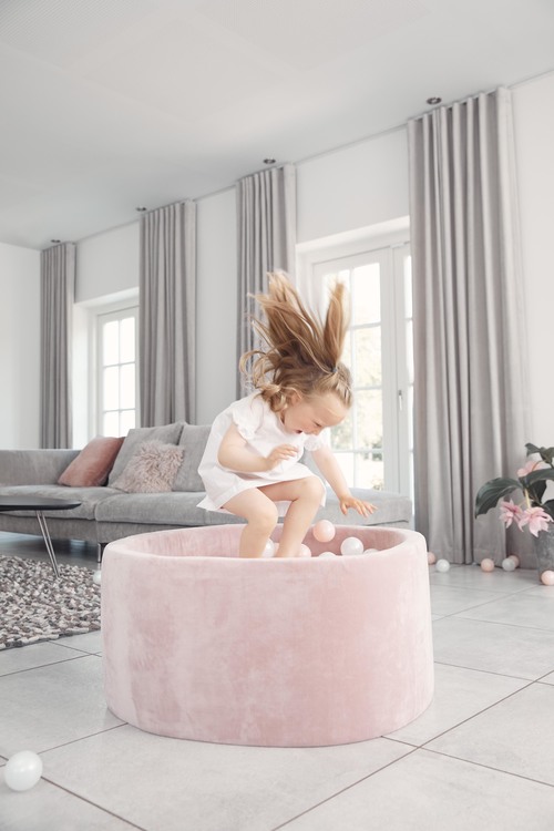 Kidkii lite, rosa sammet bollhav med 150 bollar