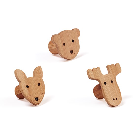 Krokar fungerar som klädhängare och blir en fin detalj i din barnrumsinredning. Du kan självklart använda de även i badrummet eller varför inte som en egen krok i hallen för ditt barn. Du kan enkelt bestämma höjden och hur ska de sitta själv, så att den passar storleken på ditt barn och den själv hänga upp eller ta ner saker från krokar utan besvär. Helt gjort i bambu.