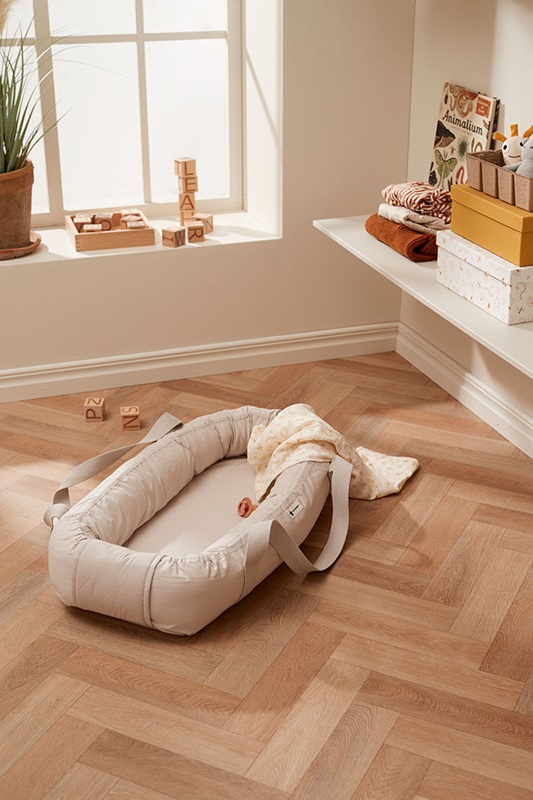 Med två rejäla handtag så kan du enkelt flytta ditt barn på ett bra sätt. Babynestet har höga, vadderade skydd som gör det mjukt och tryggt för ditt barn att sova i.