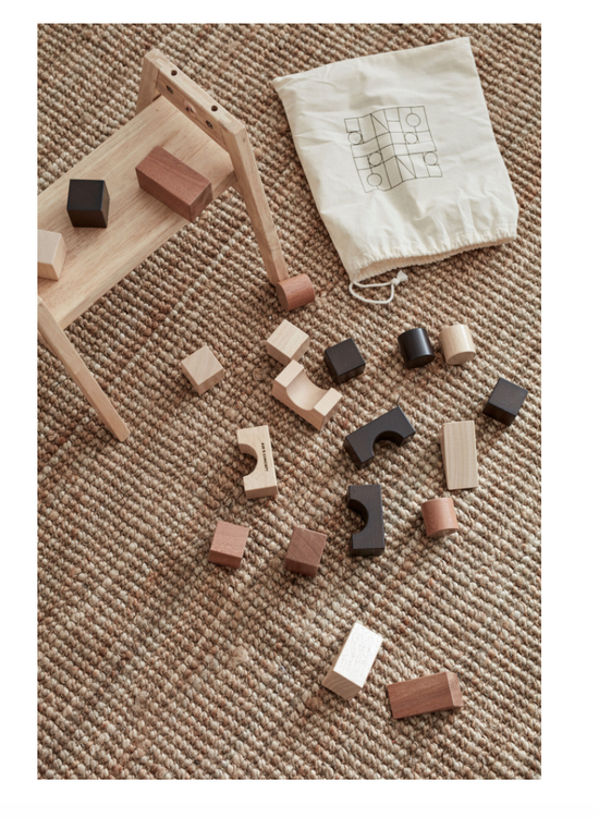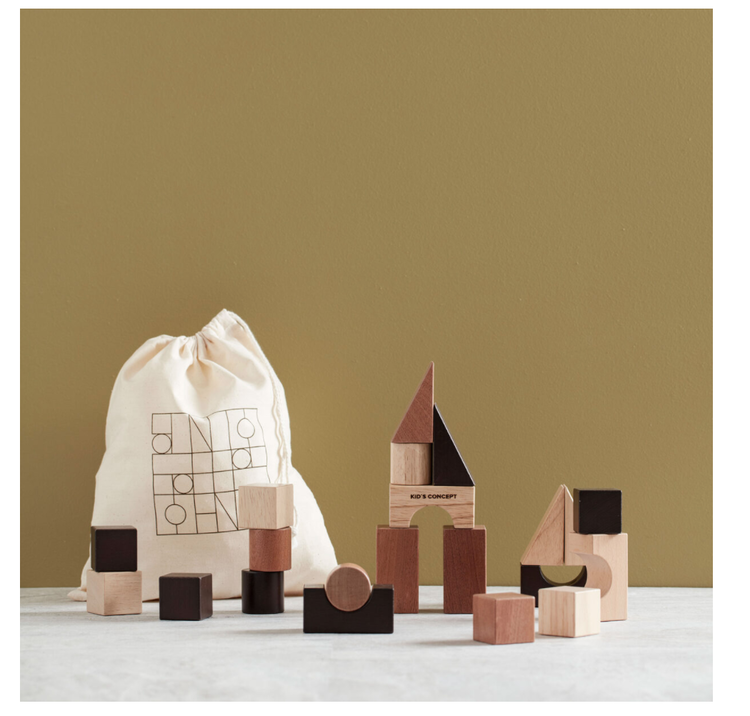 De här underbara träklossarna från Kids Concept är både häftiga och roliga att leka med. Garanterat en massa glädje och skratt för ditt barn samtidigt som det utvecklar och stimulerar sin kreativitet. Träklossarna är rejäla och av hög kvalitet, vilket ger dem en lång livslängd. Klossarna kommer in en fin och praktisk liten påse av tyg. Klossarna är godkända enligt CE märkning och är tillverkade av gummiträ-, sapeli och betsat bokträ.