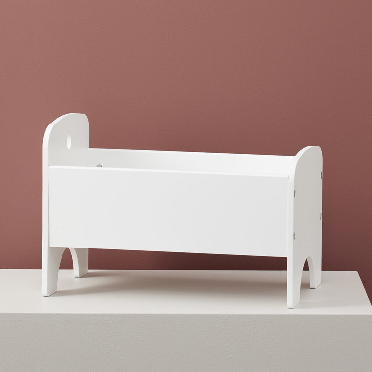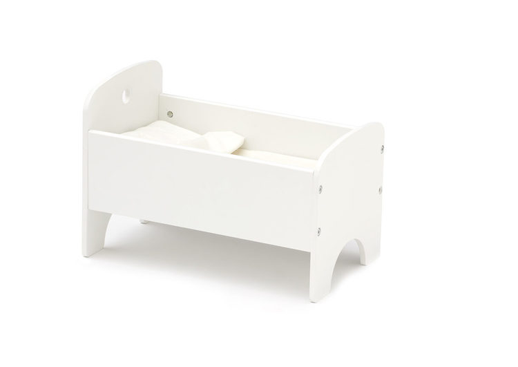 Vacker och praktisk docksäng från populära Kid?s Concept . Själva docksängen är vit och helt gjord av trä med ett tillhörande bäddset.