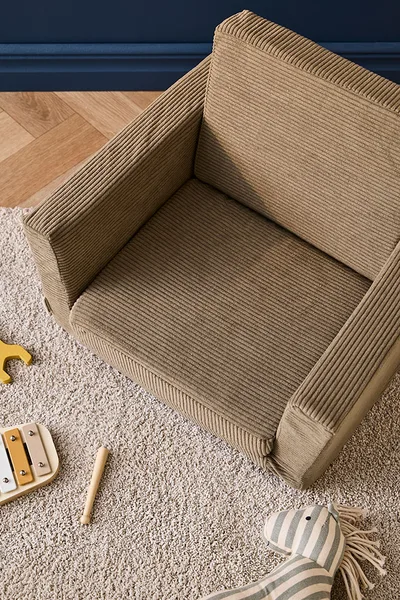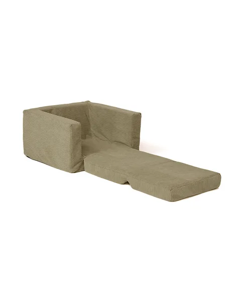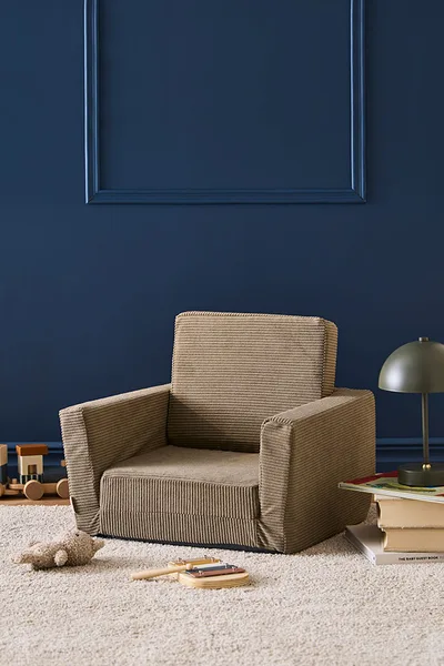 Fåtöljen ger en bekväm sittplats som enkelt kan fällas ut till en längre madrass, perfekt för vilopauser eller när små gäster stannar över. Det mjuka tyget och den mysiga stoppningen gör fåtöljen till barnens favoritplats, samtidigt som den tillför både komfort och funktion till rummet. Överdraget går enkelt att ta av genom att öppna dragkedjan på undersidan, tyget kan tvättas i tvättmaskinen.