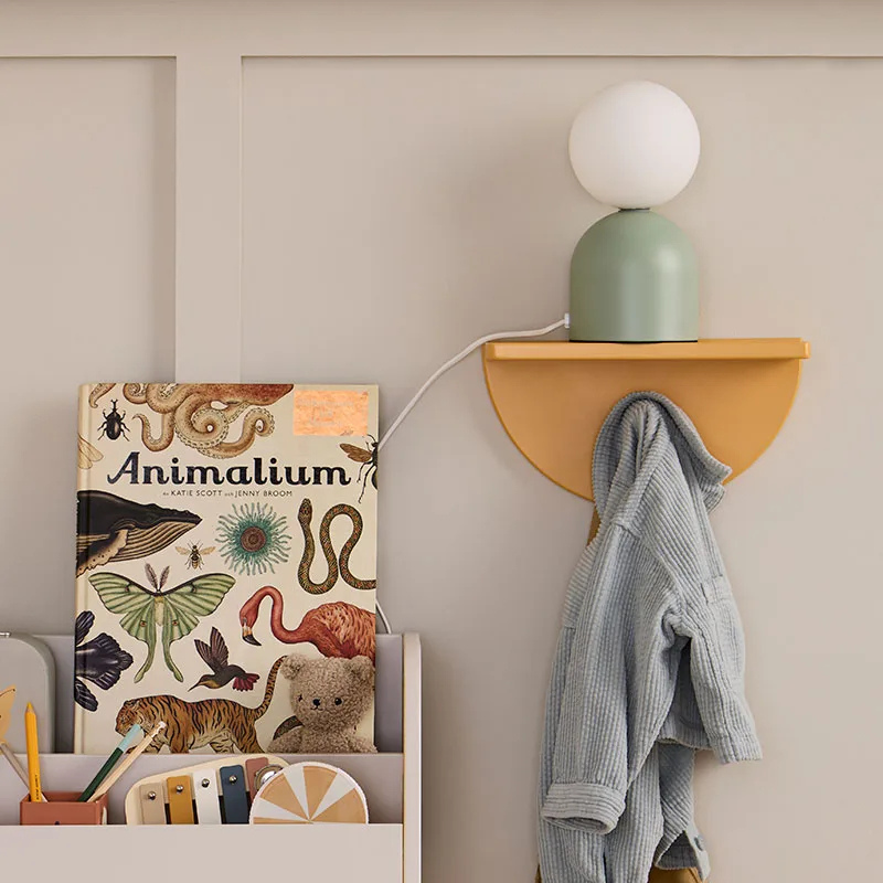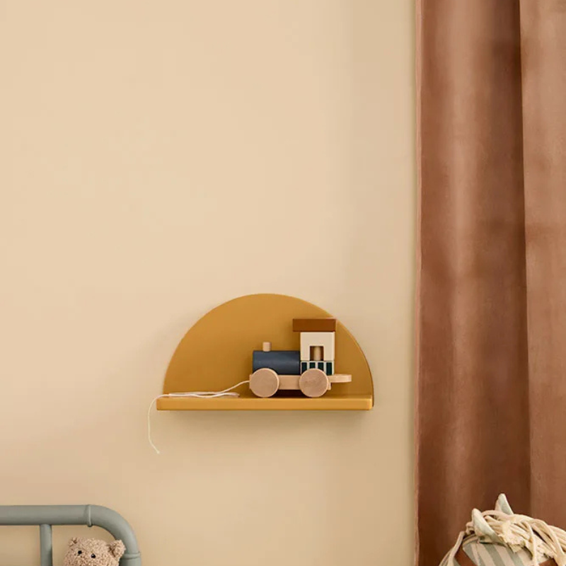 Hyllan är perfekt för att ställa fram prydnadssaker eller din favoritteddybjörn. Den kan även användas som hängare om du monterar den medföljande kroken. På baksidan finns en förberedd plats där du enkelt kan borra för att fästa kroken. Hyllan har dolda fästen/nyckelhålsupphängning som ger ett stilrent och rent uttryck. Observera att skruvar inte ingår, då rätt fästen måste anpassas efter din väggtyp.