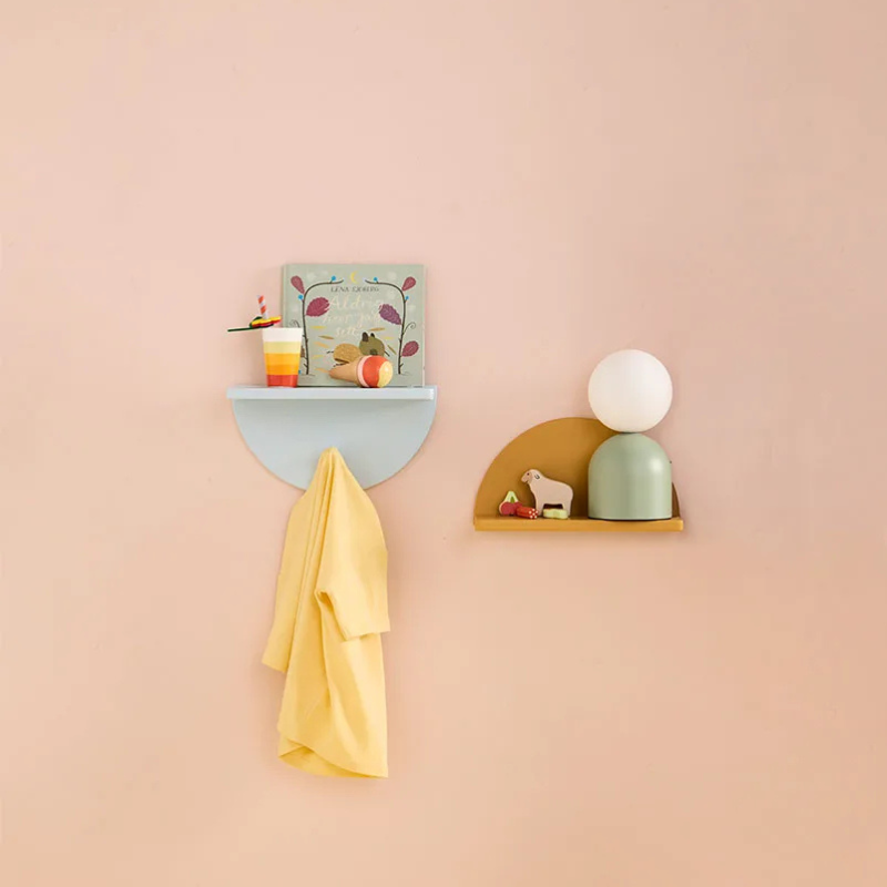 En liten, dekorativ och praktisk hylla som kan vridas 180 grader och användas både med eller utan krok. Kombinera gärna flera hyllor i olika färger, antingen sida vid sida eller i kreativa mönster, för att skapa en unik inredningsdetalj.