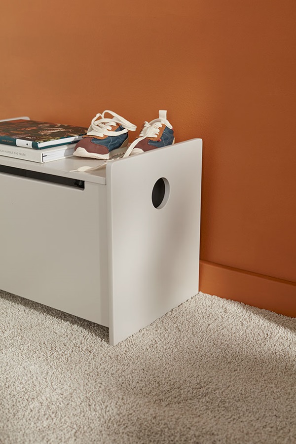 En smart kombination av förvaring och mini-bänk från svenska Kid`s Concept, helt anpassad för barnrummet. En optimal möbel att inreda med!