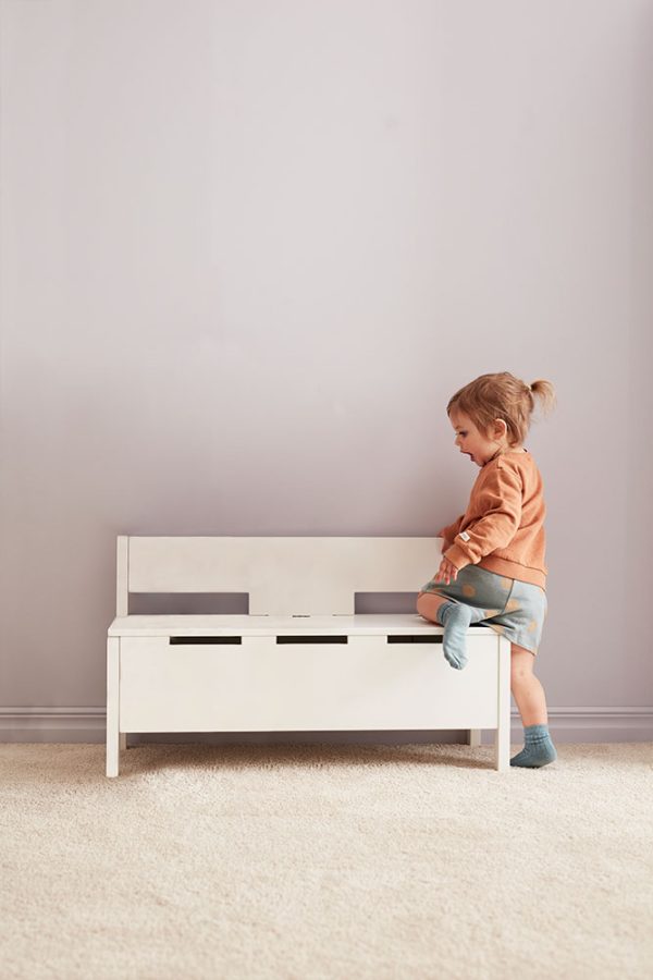 En smart kombination av förvaring och bänk från svenska Kid`s Concept, helt anpassad för barnrummet. En optimal möbel att inreda med!