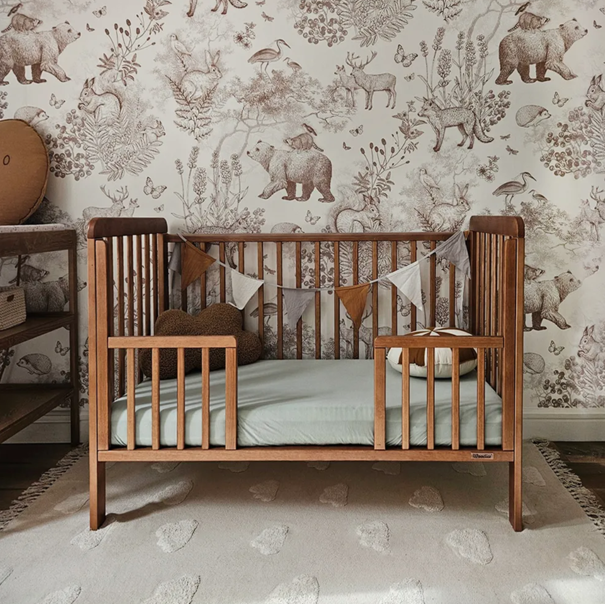 Till denna säng kan du köpa till en förvaringslåda och en avtagbar juniorsida. Men denna juniorsida omvandlar du lätt din spjälsäng till en dagbädd när barn blivit större.