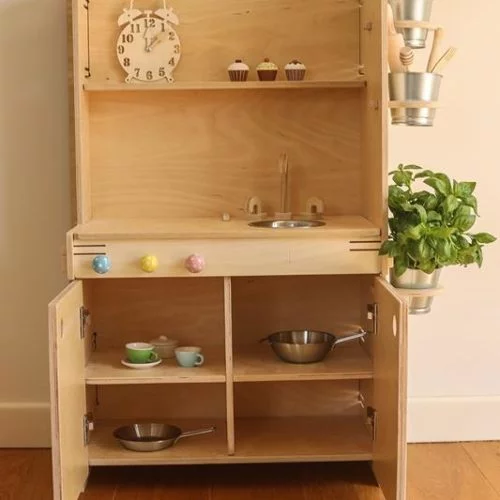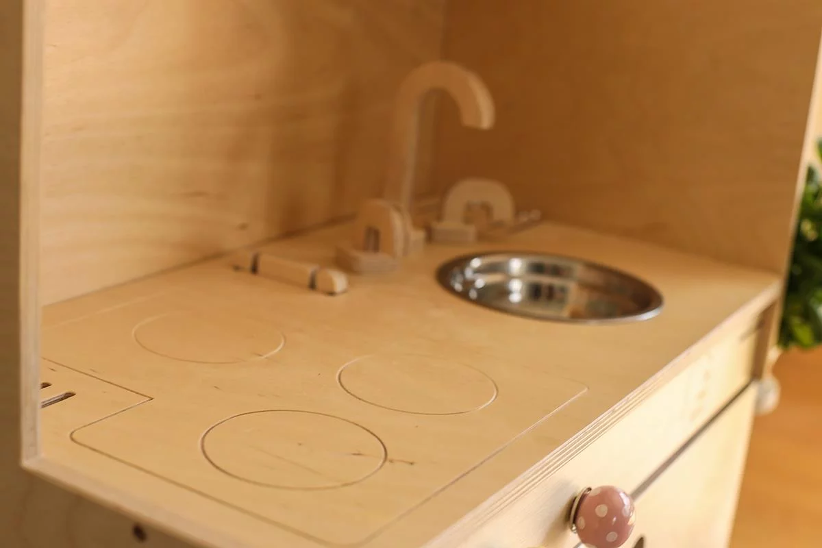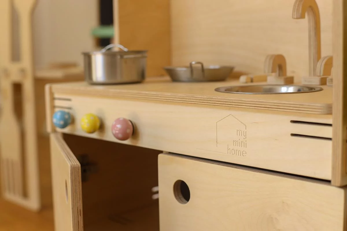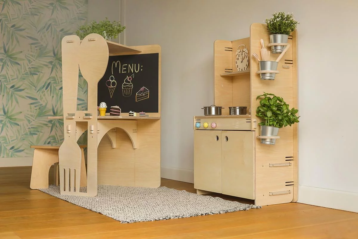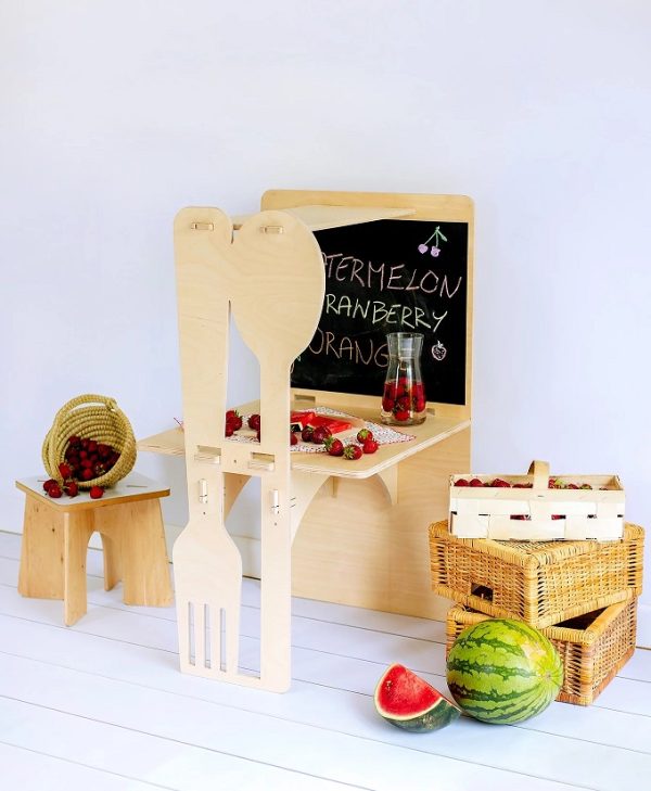 Aldrig förut har det varit enklare att på ett säkert (och stilsäkert) sätt låta stjärnkockarna ta plats I köket! Köksön är gjord med stor omsorg. En fin detalj är griffeltavlan där barnet kan skriva vad som kommer att serveras till middagen. Bon appétit!