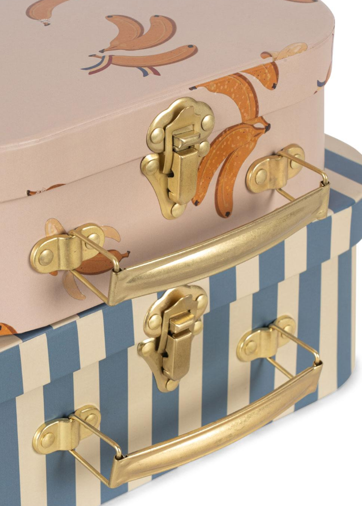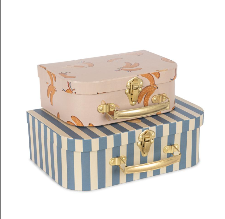 Fint väskset i hårdpapp med metallhandtag. Den mindre väskan får enkelt plats i den större ? perfekt för att förvara små skatter eller ta med på äventyr.
