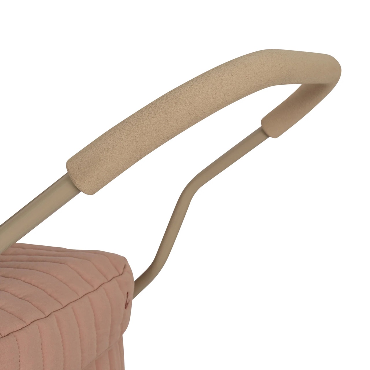 De fyra stora hjul i EVA-material garanterar stabil körning. Metallramen har mjuka handtag för extra komfort.