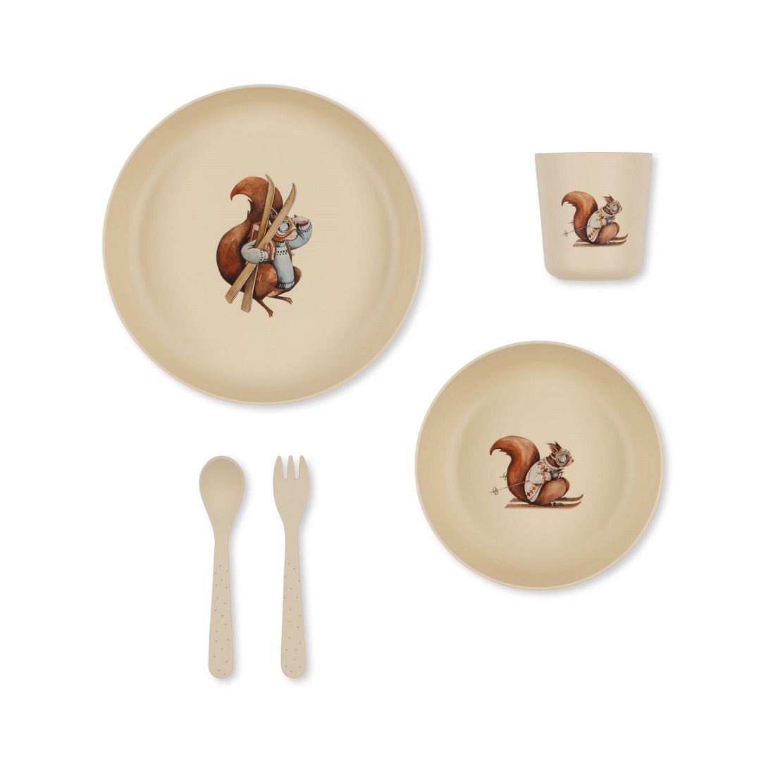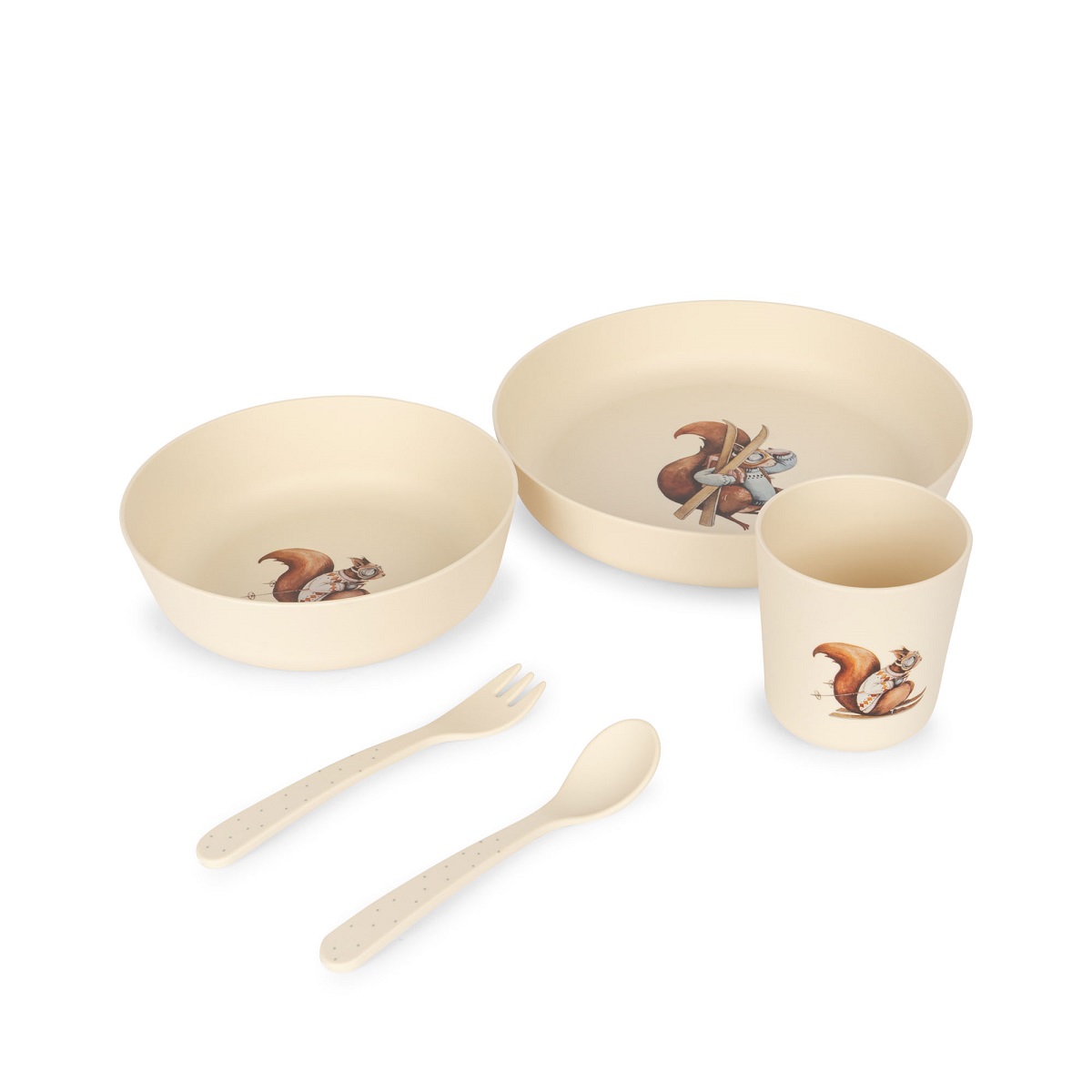 Med den fina tallriken, skålen, koppen och besticken kommer du och ditt barn att förena nytta med nöje.
