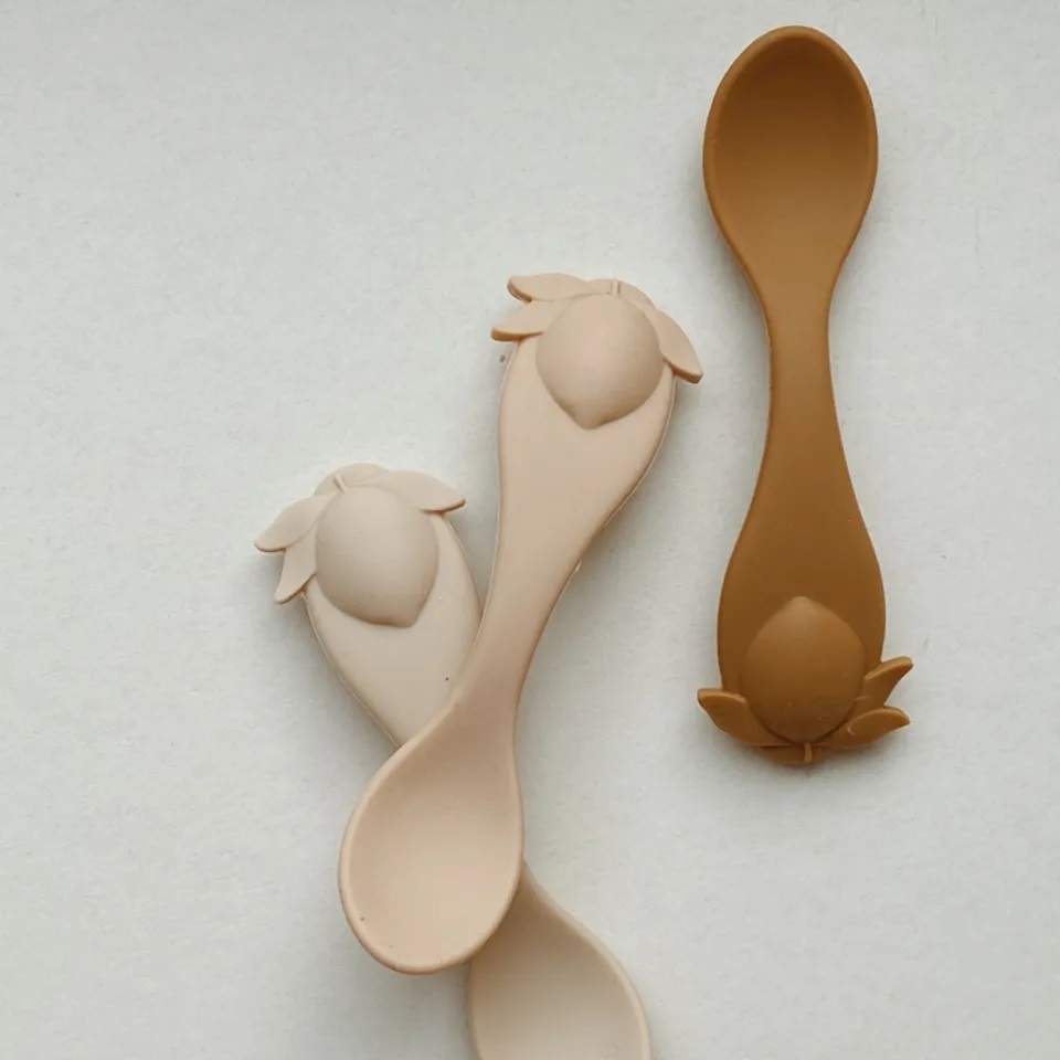 Ett mycket gulligt set av 3 silikonskedar med ergonomiska handtag för små händer med stora ambitioner från det välkända danska märket Konges Sløjd.