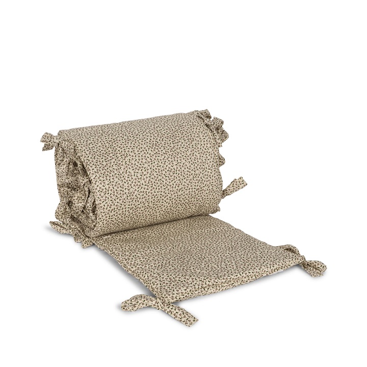 Ett klassiskt spjälskydd utformat i en modern variant från otroligt populära danska Konges Sløjd! Spjälskyddet fästs med söta fiskbensband och är lämpligt för vaggor, spjälsängar och barnsängar med stödbräda med ribbor.Mått: Höjd 30 cm. Längd 360 cm. Material: 100% ekologisk bomull. Fyllning: återvunnen polyester. Designer: Konges Sløjd