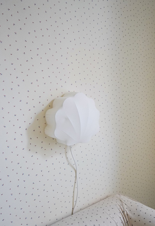 En mycket vacker och stilren vägglampa i formen av en mussla från danska Konges Sløjd!Lampan ger ett varmt och behagligt ljus, och passar perfekt som nattlampa i barnrummet. Ditt barn kommer alltid att ha sin vän hos sig i sovrummet, vilket ger det trygghet och lugn. Det fina med denna lampa är att den är vacker både tänd som släckt och du kan själv justera ljuset till en nivå som passar dig…