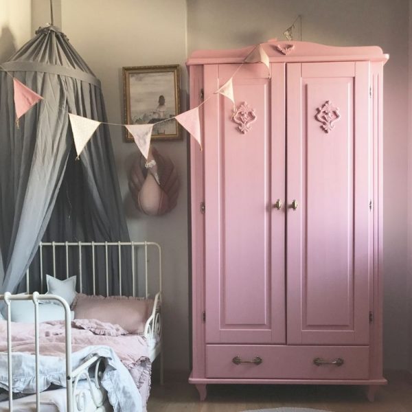 En riktig dröm för barnrummet, det är garderoben Charlotte som är så vacker att den även passar in i föräldrarnas sovrum. Garderoben är helt byggd för hand av massiv furu och det ingår en massa charm och fina detaljer. Eller vad sägs om de fina böjda träbenen, och de vackra detaljerna på garderobsdörrarna. Lägg till dekorativa knoppar och handtag i färger av åldrat guld eller silver så har du skapat något helt unikt.