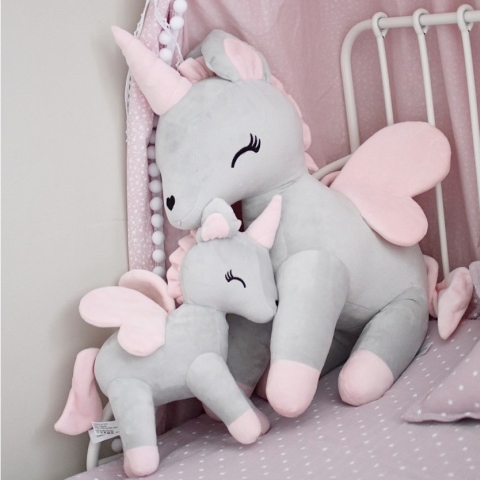 En fantastisk och vacker enhörning som kommer att bli ditt barns favoritkramdjur under många år framöver. Förutom att den är mjuk med fina detaljer som vingar och en hjärtformad nos är den underbart fin att ha i barnrummet som inredningsdetalj.