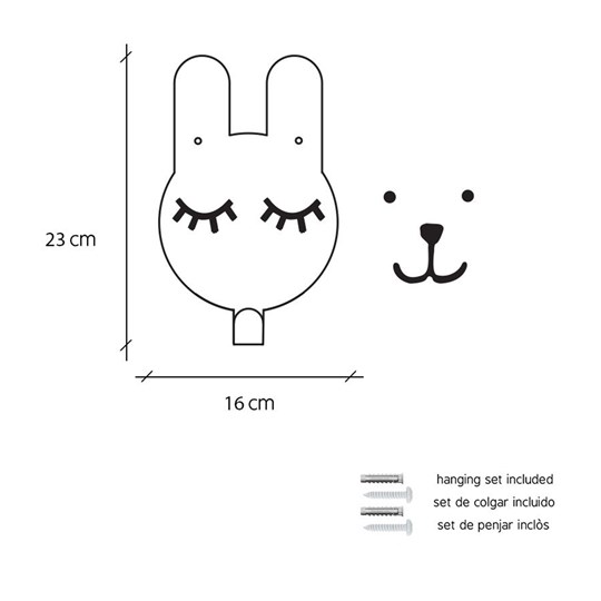En vacker krok i form av en kanin. Full med fina magnetdetaljer som ögonfransar.Matcha gärna med en fin papperspåse från Tellkido i samma design.Innehåller smådelar och skruvar.Mått: 23 cm x 16 cm Designer: Tellkiddo