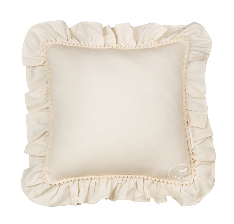 En härligt mjuk kudde gjord av finaste bomullssatin och dekorerad med fantastiska volanger runt om. Den optimala kudden till barnrummet och för att skapa en fantastiskt fin barnrumsinredning. Kudden kommer komplett med överdrag och fyllning.