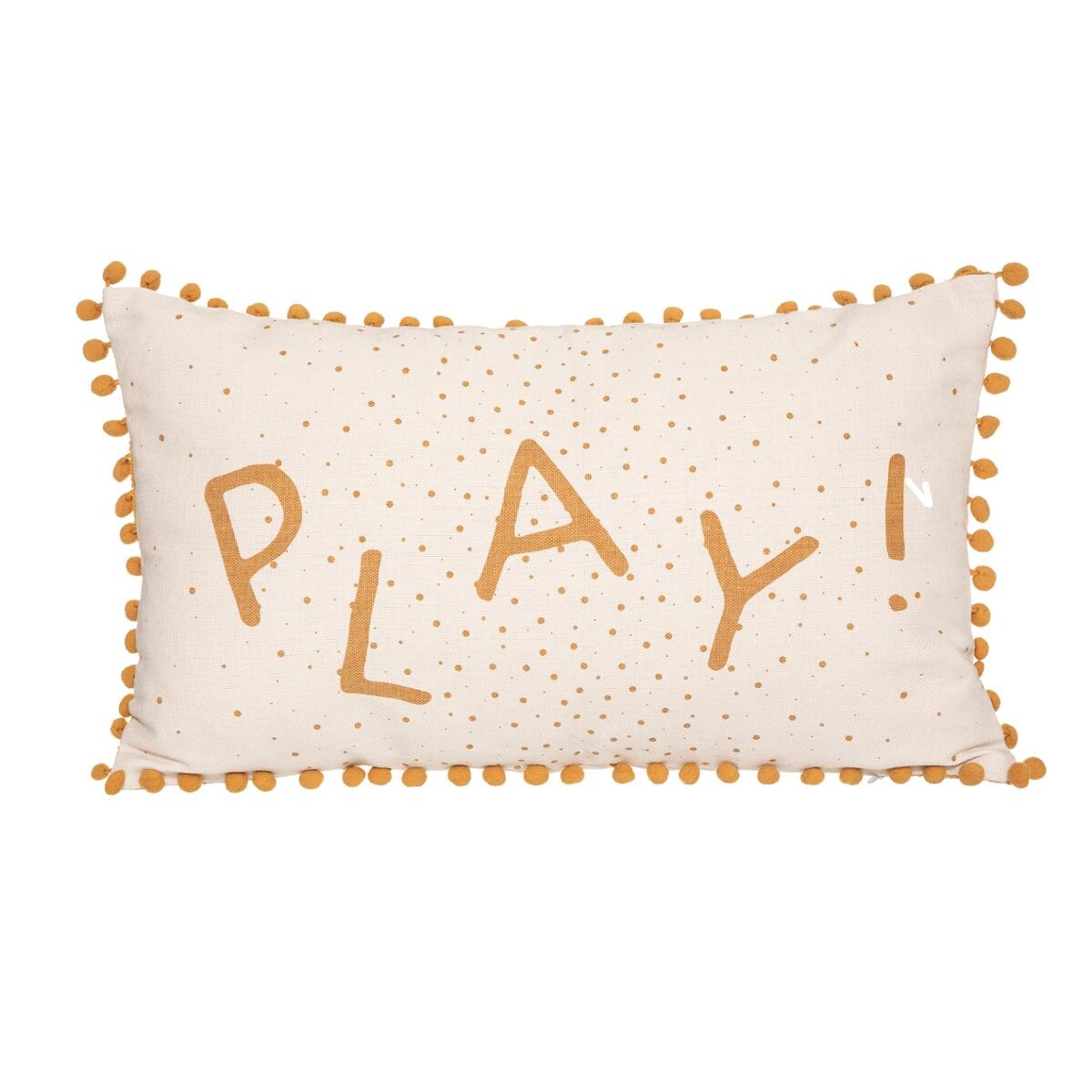 En fantastisk kudde med pompom och texten ”Play!”!Det vackra utförandet är en sak, men de underbar materialvalen gör det även till en kramfavorit hos barnen. Om du bara ska köpa en inredningsprodukt till barnrummet, är denna den du ska köpa! Kudden kommer komplett med överdrag och fyllning.Mått: 50 x 30 cmMaterial: Bomull, viskos och polyester.