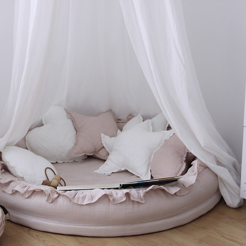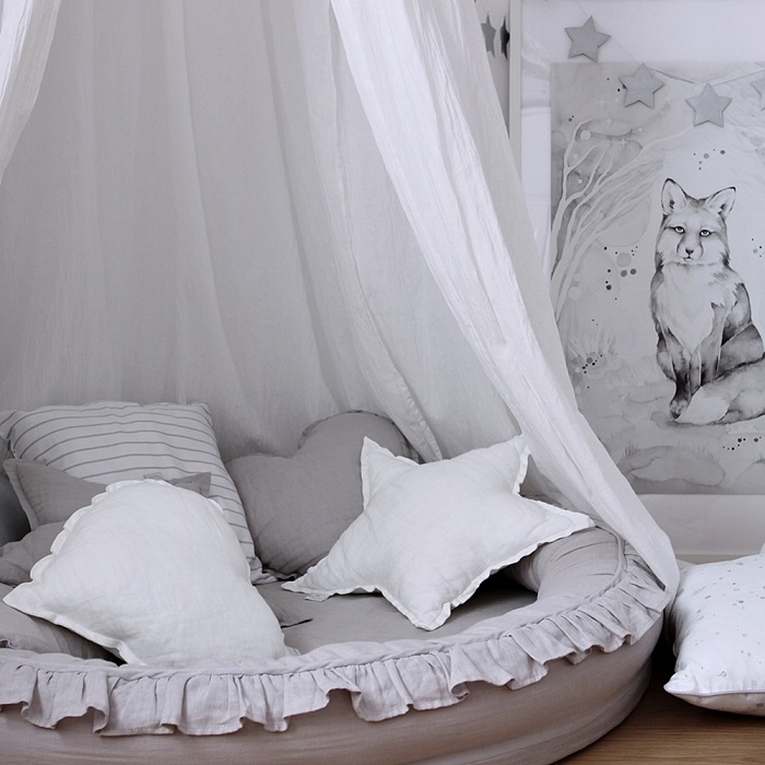 Denna mycket fina kudde i form av en stjärna ger en mycket fin atmosfär till barnrummet eller varför inte till det egna sovrummet.