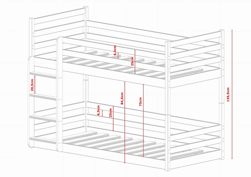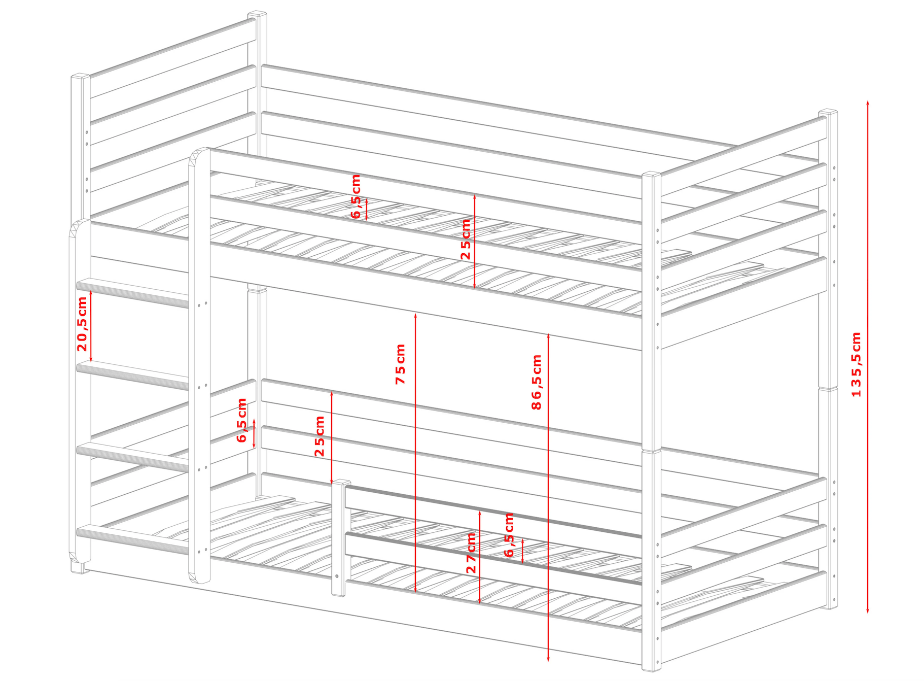 Sängarna tillverkas enligt standarden EN-747-1: 2012 + A1: 2015 i vår fabrik i Europa som har de högsta säkerhetsstandarderna för produktion av barnsängar. och kontrollerar varje steg från det att timret kommer in i fabriken till att en färdig produkt lämnar. Sängarna lackeras tre gånger med ekologisk, miljövänlig och vattenbaserad färg som följer normen EN 71-3:2019.