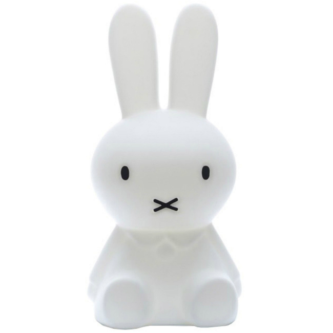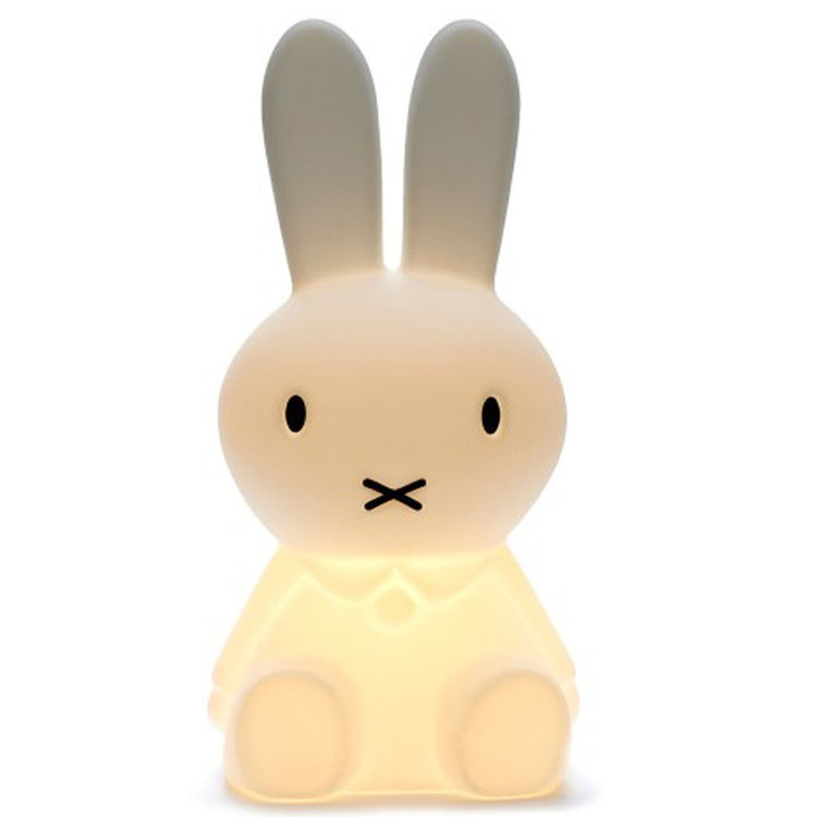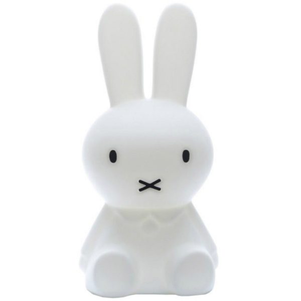 En underbar och riktigt stor lampa i form av den omåttligt populära kaninen Miffy. Lampan ger ett varmt och behgligt ljus, och passer perfekt som nattlampa/nattkompis i barnrummet. Ditt barn kommer alltid att ha sin vän hos sig i sovrummet, vilket ger det trygghet och lugn. Det fina med denna lampa är att den är vacker både tänd som släckt och du kan själv justera ljuset till en nivå som passar dig perfekt för stunden.