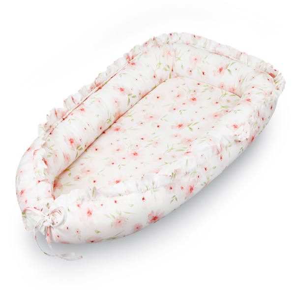 Detta underbart fina babynest med vackra volanger kommer inte bara vara en säker och mysig plats för ditt lilla barn, utan även förgylla ditt rum med någonting riktigt vackert. Ett babynest är kanske det mest praktiska barntillbehöret som gör att ditt barn kan sova tryggt, var det en befinner sig. Du kan enkelt flytta runt den mellan olika rum, eller ta med dem när ni ska bort eller ut och resa. Barnet sover även tryggare om de ligger i föräldrarnas säng, eller i den egna spjälsängen/vaggan. Matchas självklart med ett fint bäddsett i samma stil och även en bordslampa
