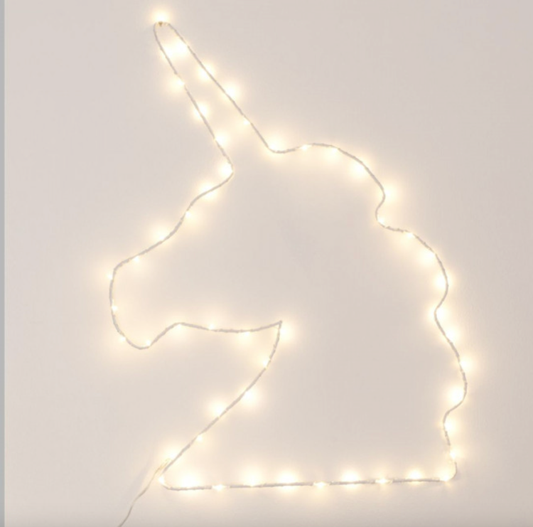 En mycket vacker och stilren ledlampa i formen av en vacker enhörning. De små ljuskällorna skapar ett mycket behagligt ljus i barnrummet som bidrar till att ditt barn känner sig trygg. Den lampa hänger finast på väggen, eller köpa en likadan eller något annat ur samma serie, för att skapa ett unikt barnrum.