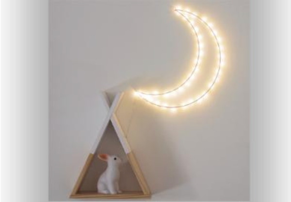 En mycket vacker och stilren ledlampa i formen av en vacker måne. De små ljuskällorna skapar ett mycket behagligt ljus i barnrummet som bidrar till att ditt barn känner sig trygg. Den lampa hänger finast på väggen, eller köpa en likadan eller något annat ur samma serie, för att skapa ett unikt barnrum.