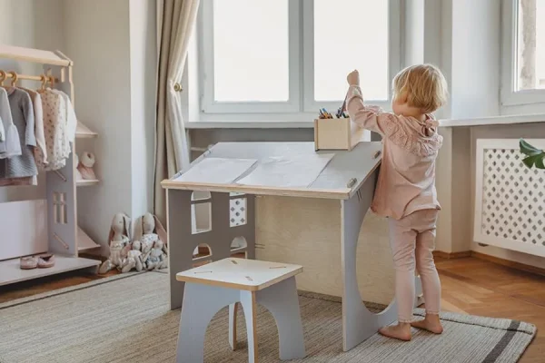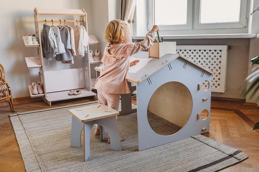 Underbart möbelset med ett lekhus och en pall! My Mini Home är experter på att skapa vackra barnmöbler med flertalet användningsområden.