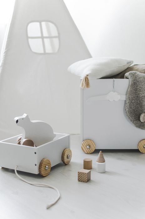 En elegant och praktisk leksakslåda av större modell,  som gör att ditt barn kan flytta runt sina favoritleksaker och dessutom få plats med många. Den är även smart när du själv ska städa upp leksakerna då den rullar smidigt på golvet. Komplett med 4 rejäla hjul och ett bra rep gör den mycket praktisk. Förutom att ni har ordning och reda, fungerar den även som en fin inredningsdetalj till…