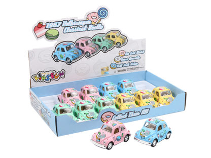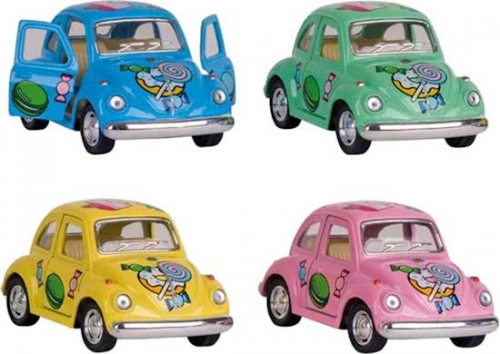 En charmig och fin leksaksbil i metall som ditt barn kommer att ha mycket roligt med. Byggd efter Volkswagens populära ?Classic? från 1967 och en riktig liten racer som åker av sig själv när du dragit den bakåt.